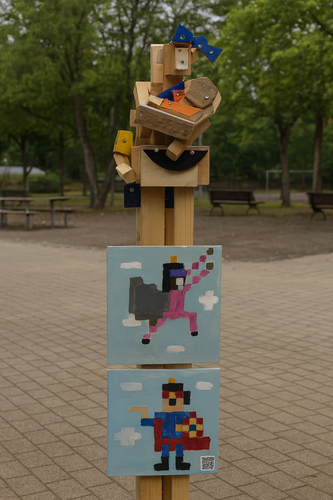 Doch damit nicht genug – jedes Schülerpaar schrieb auch eine eigene Geschichte zu seinem Kunstwerk. Über QR-Codes an den Skulpturen gelangt man direkt zu diesen Texten auf der Schulhomepage und erfährt, welche Gedanken und Ideen hinter den Werken stehen.