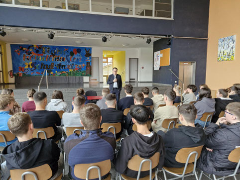 Heute hatten unsere 9. Klassen Besuch vom Berufswahlcoach Florian von Kritter – Gewinner des Sprungbrett Bayern Praktikumsreport-Wettbewerbs! 🏆