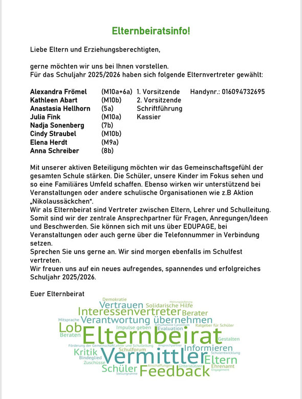 Besonders freuen wir uns, dass Frau Stephanie Menacher offiziell zur neuen Verbindungslehrerin gewählt wurde.