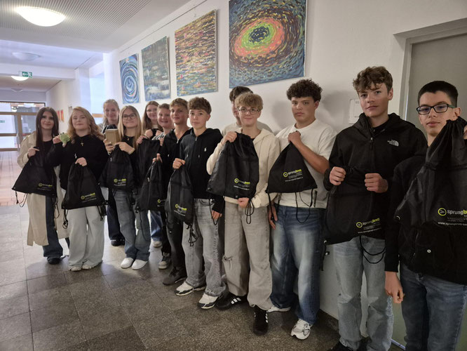 Auch viele weitere Schüler*innen dürfen sich über sprungbrett-Rucksäcke freuen:„Dieser Wettbewerb zeigt, wie erfolgreich die enge Zusammenarbeit von Schule, Betrieben und Projekten wie sprungbrett bayern sein kann,“ betont Rektorin Frau Grzemba und freut sich über den Gewinn.